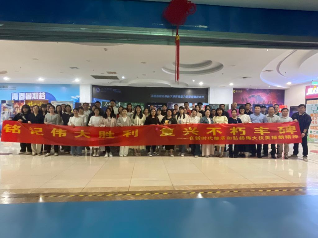 11月7日,由公共基础部党支部牵头组织思想政治理论教学部党支部、图文信息中心党支部、组织人事处党支部、纪检监察室和工会党支部,联合开展主题为“铭记伟大胜利 复兴不朽丰碑——在新时代继承和弘扬伟大抗美援朝精神”的党日观影活动。通过组织观看近期热门主旋律电影《志愿军:存亡之战》,了解抗美援朝志愿军丰功伟绩,厚植支部教职工爱国主义情怀,勇担立德树人使命,进一步增进民族自信心。各支部党员、入党积极分子共72人参加活动。