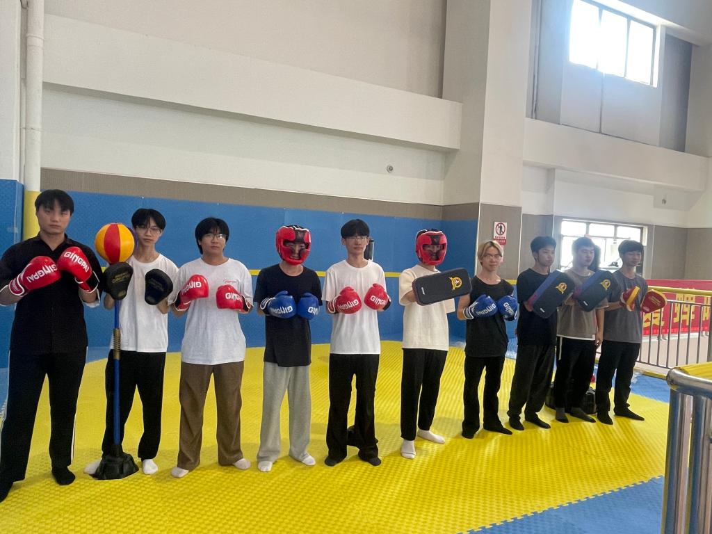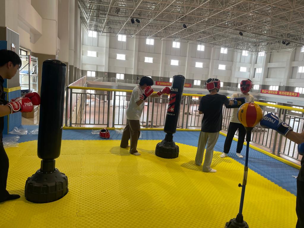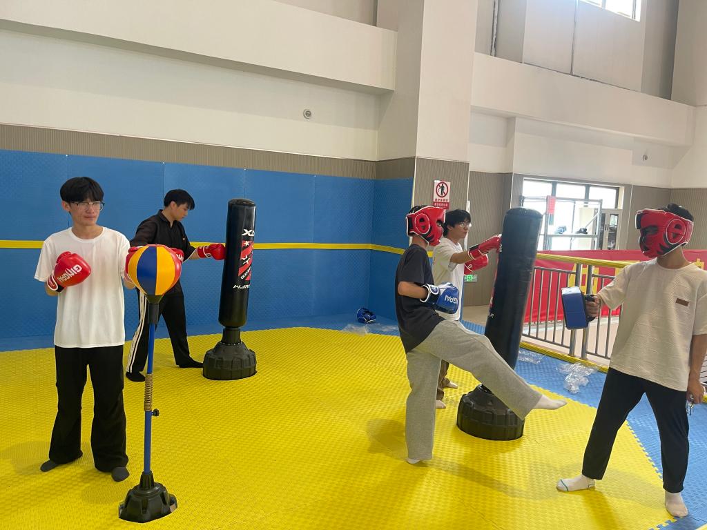 拳击场内各类器材一应俱全,包括拳击沙袋、立式速度球、反应靶、拳击手靶、脚靶、半指拳击手套、成人训练拳套、电子拳击靶墙以及跆拳道护头等。所有器材均可免费使用,无需额外支付费用,师生们可以尽情享受拳击运动带来的乐趣与挑战。