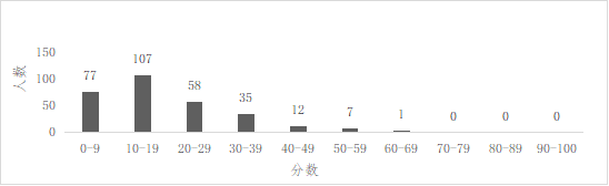 本次模拟考试共计297名学生参加,具体见图12。最高分69分,最低分0分,平均考试分数18.6分,具体见图13。考试分数三十分以下242人,占比81.5%;四十分以下277人,占比93.3%。考试情况展现了学院学生存在严重的数学基础薄弱、学习成绩差的问题。提高学生数学成绩已经刻不容缓。