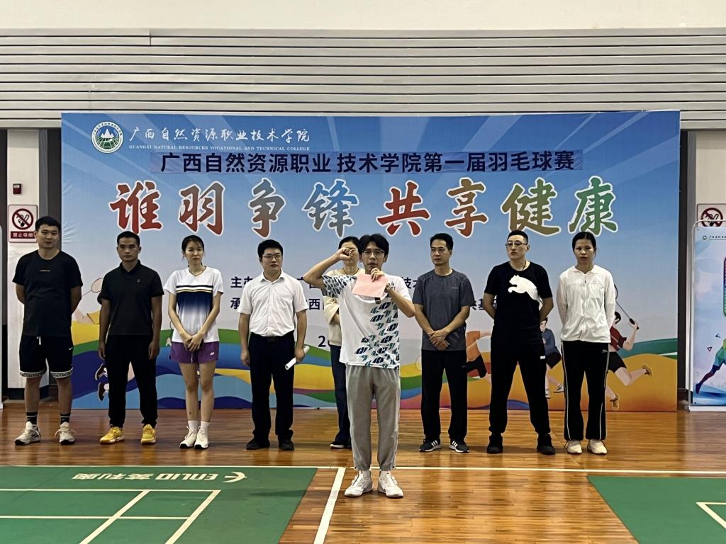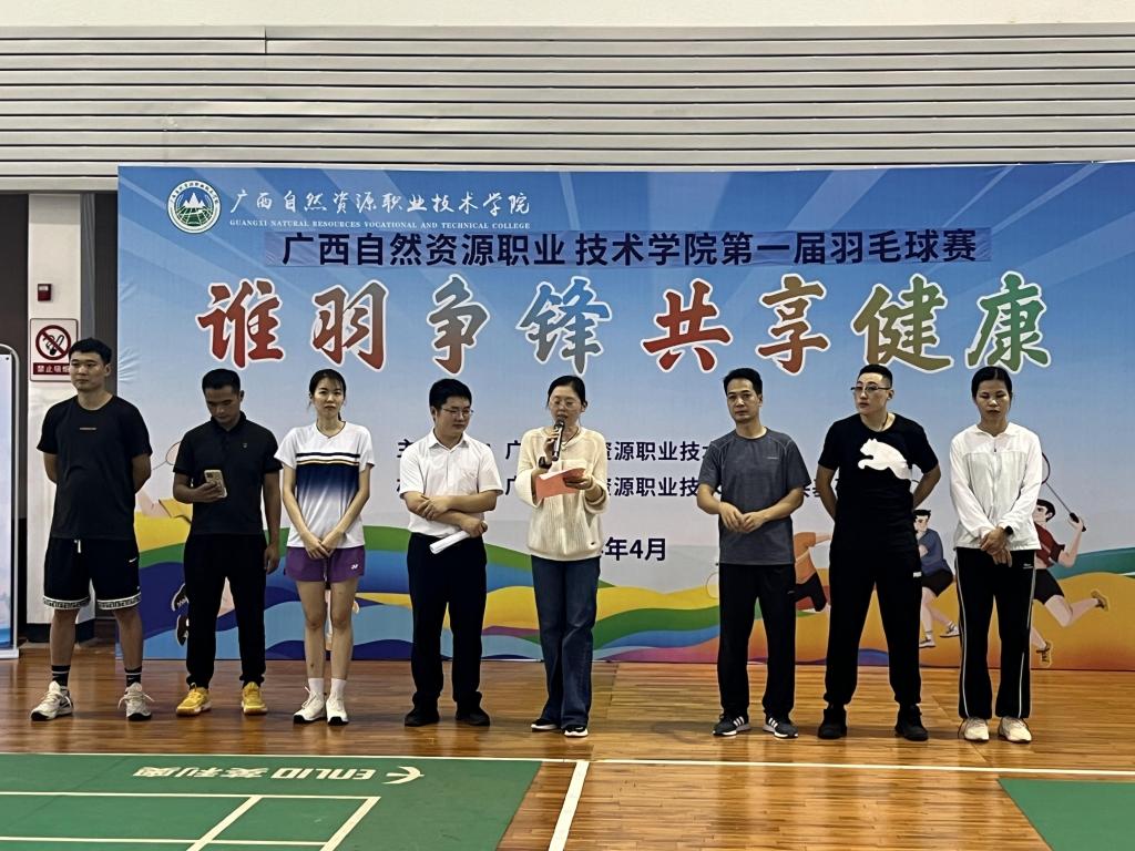 4月24日在体育馆一楼举行举行广西自然资源职业技术学院第一届学生羽毛球比赛开幕仪式,出席开幕式的领导老师有学院工会副主席张慧老师、公共基础部负责人汪元飞老师、体育组老师以及各位羽毛球爱好者。