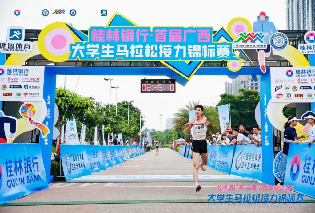 5月18日,由广西学校体育卫生艺术学会主办、广西民族大学承办的首届广西大学生马拉松接力锦标赛在南宁市江北大道邕江运动公园圆满收官。本次比赛全区各高校共派出44支队伍,379名运动员参加,我校派出16名校田径队队员参加此次比赛,带队老师为梁锋、王得有、谭兴财、王宏、石乾。