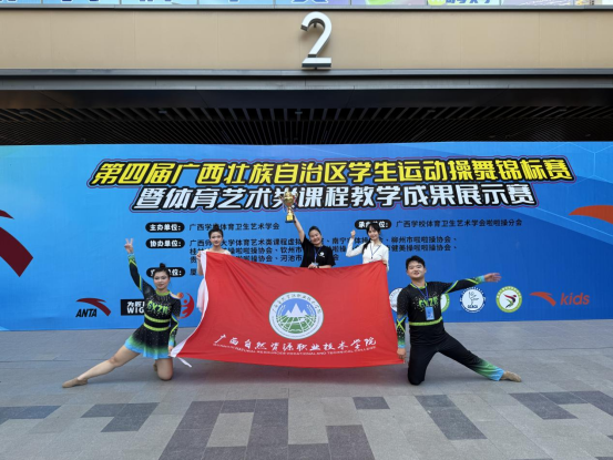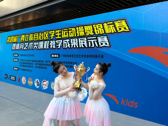 6月7日,第四届广西学生运动操舞锦标赛圆满收官,本次赛事有全区约34支队伍参加。在激烈的角逐中,我校啦啦操队凭借出色表现脱颖而出,一举斩获高职高专组双人花球项目冠军、双人爵士舞季军两项大奖。
