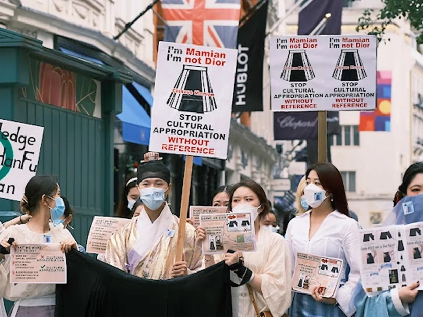 “In front of Dior's boutique in London, me and other Hanfu lovers wore Hanfu and provided explanations in English about Hanfu and the Chinese traditional horse face skirt from the Qing Dynasty, clarifying the misconception that Dior's skirt structure was inspired by elements of Korean traditional clothing.”