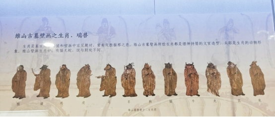The video showcases murals from the Weishan Tomb in Hunan province, featuring twelve anthropomorphic figures with animal heads and human bodies. These heads represent the monkey, pig, rooster, tiger, horse, goat, dog, cat, ox, dragon, rat, and rabbit.