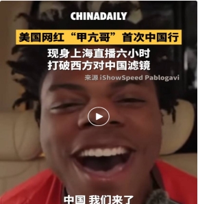 对于“甲亢哥”中国行,一位美国博主说:“美国政府过去一年刚花了16亿美元抹黑中国,结果被一些个人网红在影响力上碾压了。他们只要亲自去中国走走、直播起来,就让美国政府天价宣传打水漂了。”