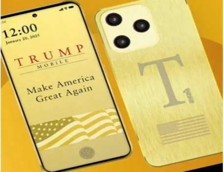 土豪金的外壳、星条旗标志、开机就是“让美国再次伟大”(MAGA)的壁纸,这款名为T1的智能手机设计上充满了特朗普元素。