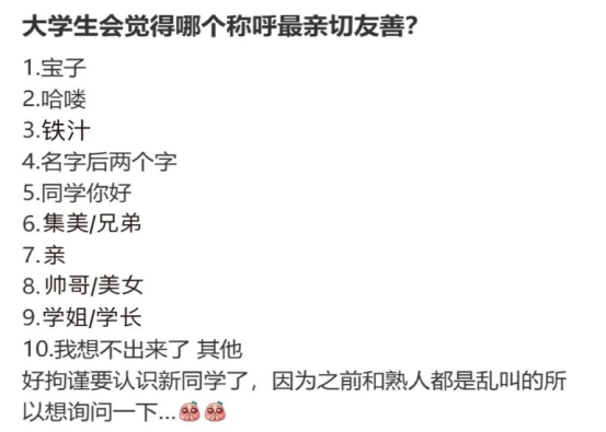 还有网友表示,自己刚上大学好纠结,不知道怎么称呼身边的同学。