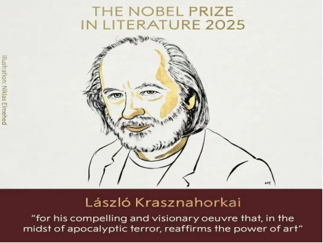 瑞典文学院宣布2025年诺贝尔文学奖授予匈牙利作家拉斯洛(László Krasznahorkai)。获奖理由是“因其引人入胜且富有远见的作品,在末日般的恐怖中,再次彰显了艺术的力量”。