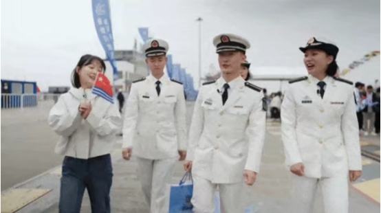 学员刘天卉带着父亲在舰上四处走走看看,她的家乡泰州是中国人民解放军海军的诞生地。从太爷爷、爷爷、叔叔到她,小刘已是家中第四代海军。她的父亲说,女儿选择从军,也算圆了他的梦,愿她走向深蓝,探索更多未知的海洋。